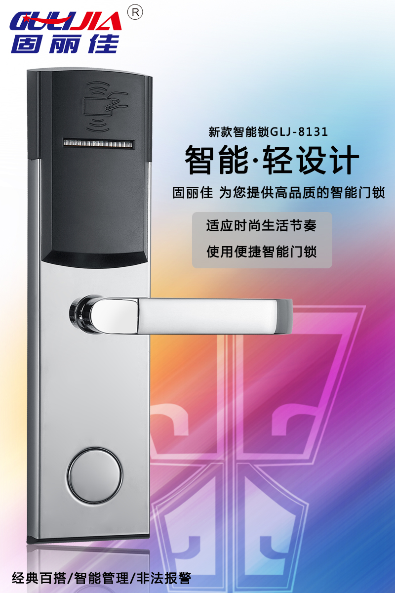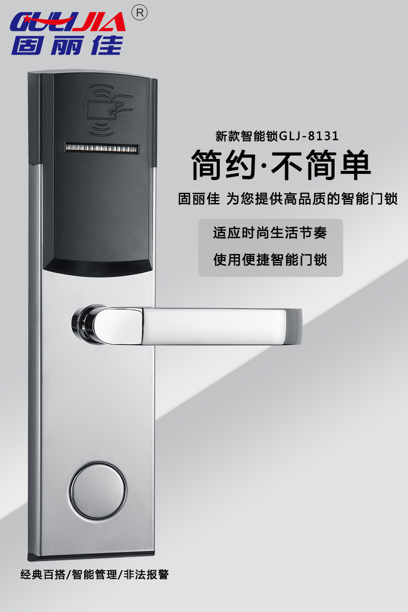 該款GLJ-8131不銹鋼酒店鎖,表面亮鉻處理,美觀耐用,永不褪色!有著經(jīng)典百搭、智能管理、智能防盜等多種特點。美麗的外觀及精美的設(shè)計讓您的酒店更加高大上,給客戶留下深刻印象。固麗佳酒店鎖防盜功能升級,安全,高檔,豪華,為您提供高品質(zhì)的智能門鎖!