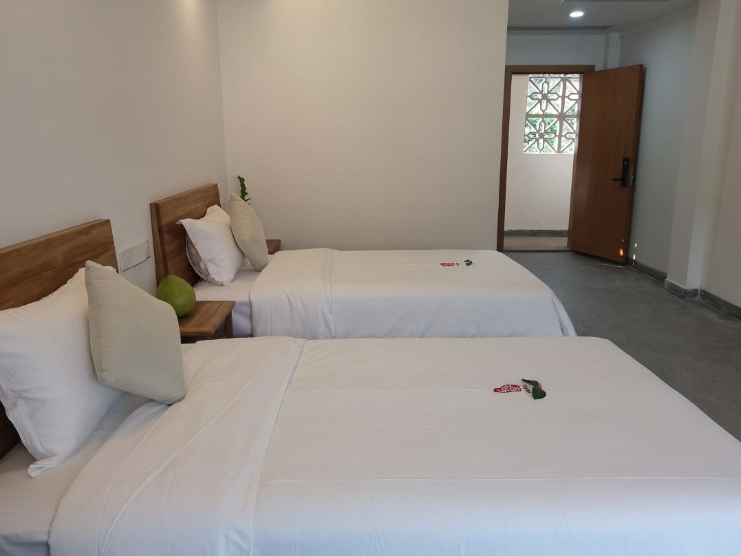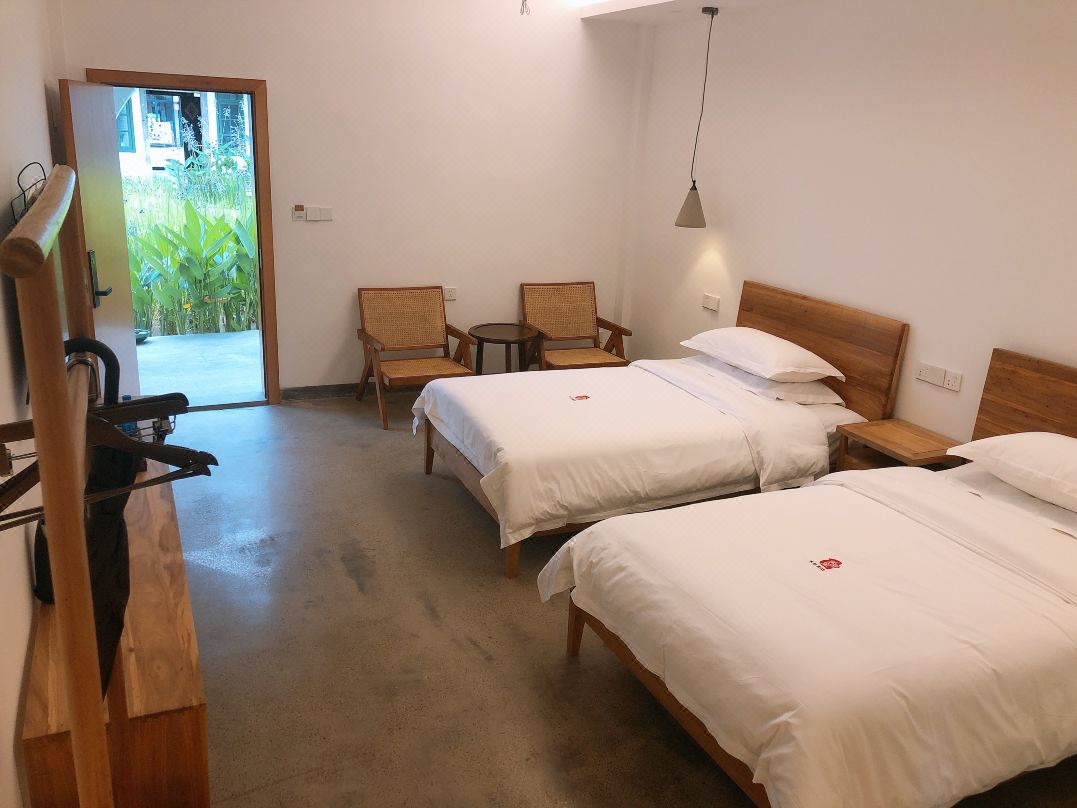 民宿的房間布置很精致雅觀,綠色窗臺顯得洋氣,桌、椅、床、凳充滿了復古的氣息。